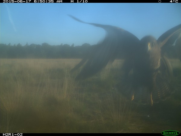 We do not see them too often but sometimes they pop up. This is because most birds spent most of their time in the air and in trees. Of course they are a lot smaller too so the chances of a bird triggering the camera is smaller. Especially when they fly by. Nevertheless we spot birds every now and then. And not just any birds. Like the ring ouzel (both male and female) were spotted recently. De ring ouzel is a rare guest passing through The Netherlands on its migration. The bird looks similar to a blackbird but is easy to distinguish thanks to the white crescent on its breast. Apart from the ring ouzel we have seen several great tits but also a raven, Eurasian skylarks, a Eurasian blue tit, Egyptian geese, mistle thrushes, a hawk and a buzzard. There are even rumours that a Eurasian woodcock has been spotted. This is a rare wader that lives in the forest. Sadly the images were not shared on the forum thus we cannot confirm this. But we can ascertain that with some luck you will be able to spot some interesting birds on Snapshot Hoge Veluwe. A special treat for the enthusiastic birders among us.