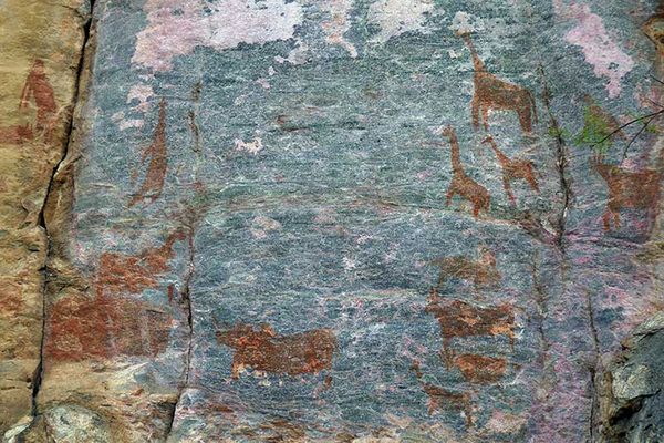 Op deze magische plek kreeg ik niet alleen een inkijkje in de lang vervlogen geschiedenis van de San, maar ook in welke dieren er toen leefden. De schilderingen van pinguïns en walvissen kwamen mij, staande in de binnenlanden van Afrika, echter nogal curieus voor. Mijn gids verklaarde hierover dat dit wel moest betekenen dat de San contacten met andere volken aan de Zuid-Afrikaanse kust onderhielden. Hoe konden zij  anders immers van het bestaan van deze twee diersoorten weten?