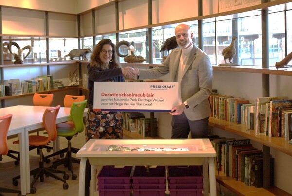‘We zijn Presikhaaf Schoolmeubelen dankbaar voor de donatie van het schoolmeubilair aan Het Nationale Park De Hoge Veluwe. Mede dankzij deze donatie kunnen we leerlingen nog beter ontvangen. We willen kinderen al vroeg in contact brengen met natuur, in de hoop dat zij er later goed voor zullen zorgen: jong geleerd, oud gedaan. Daarom kunnen basisscholen gratis het Park bezoeken’